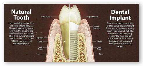 İmplant günümüzde doğal dişlere en yakın alternatiftir, İmplant yapılan diş, geleneksel köprü ve protezlere göre daha iyi konuşma ve çiğneme fonksiyonu sağlar. İmplant yöntemi yüzünüzde doğal bir görünümü de beraberinde getirir.